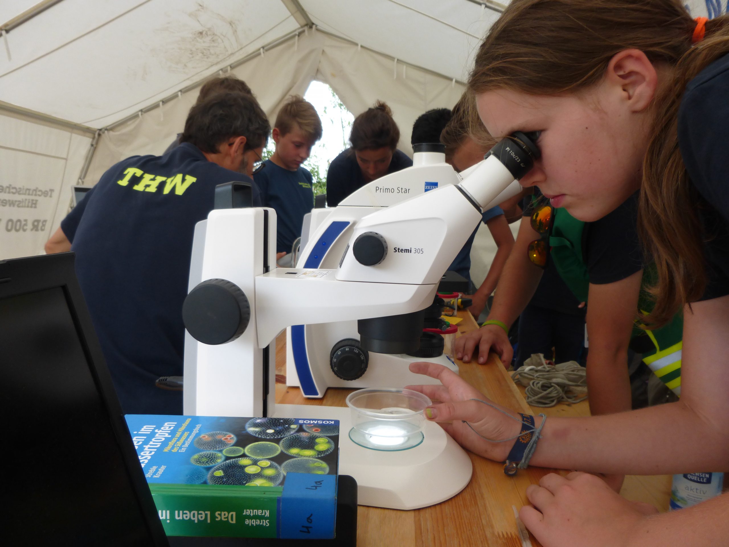 Die Stiftung THW unterstützt dank zahlreicher Spenden für die THW-Jugendarbeit das Freizeitprogramm des 17. Bundesjugendlagers: Bei einem einzigartigen Workshop konnten die THW-Jugendlichen mit echten Forschungsinstrumenten 3 Tage lang am Ufer der Saale Nachwuchsforscher sein und mit Mikroskop & Unterwasserdrohne die Saale unter die Lupe zu nehmen!