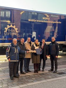 Die Stiftung THW hat gemeinsam mit Siemens Caring Hands e.V., der Firma Dräger und IHREN SPENDEN eine mobile Atemschutzübungsstrecke an die Bundesanstalt Technisches Hilfswerk (THW) gespendet. Sie ermöglicht dem THW ein ortsnahes und standardisiertes Training im Bereich der Atemschutzausbildung und stärkt damit seine Einsatzfähigkeit.